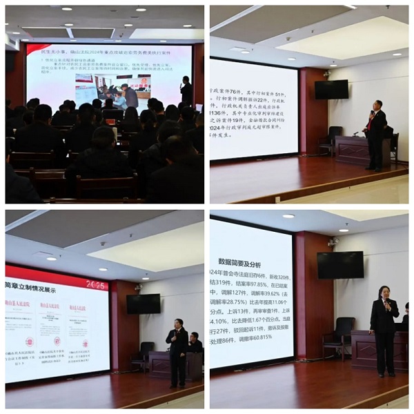 为持续提升审判执行质效,进一步明确2025年工作方向,2月5日下午,确山法院召开2024年度部门述职会。各部门负责人汇报2024年工作完成情况、存在不足及2025年工作计划,党组书记、院长张冰出席会议并作重要讲话,党组成员、副院长李军主持会议,全体干警参加会议。