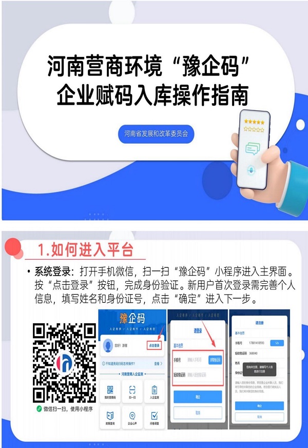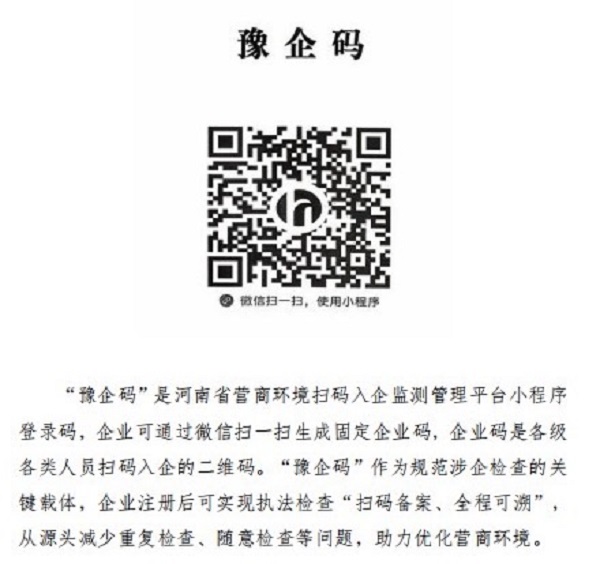 为切实减轻企业负担,营造更优营商环境,确山法院积极参与“豫企码”监测管理平台工作的推广工作,请各企业按照以下操作指南进行。