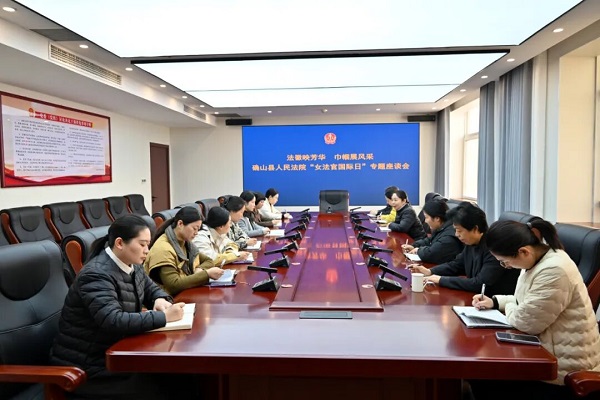 3月10日,确山县人民法院召开法徽映芳华 巾帼展风采——“女法官国际日”专题座谈会,全体女法官及女干警代表参加会议。